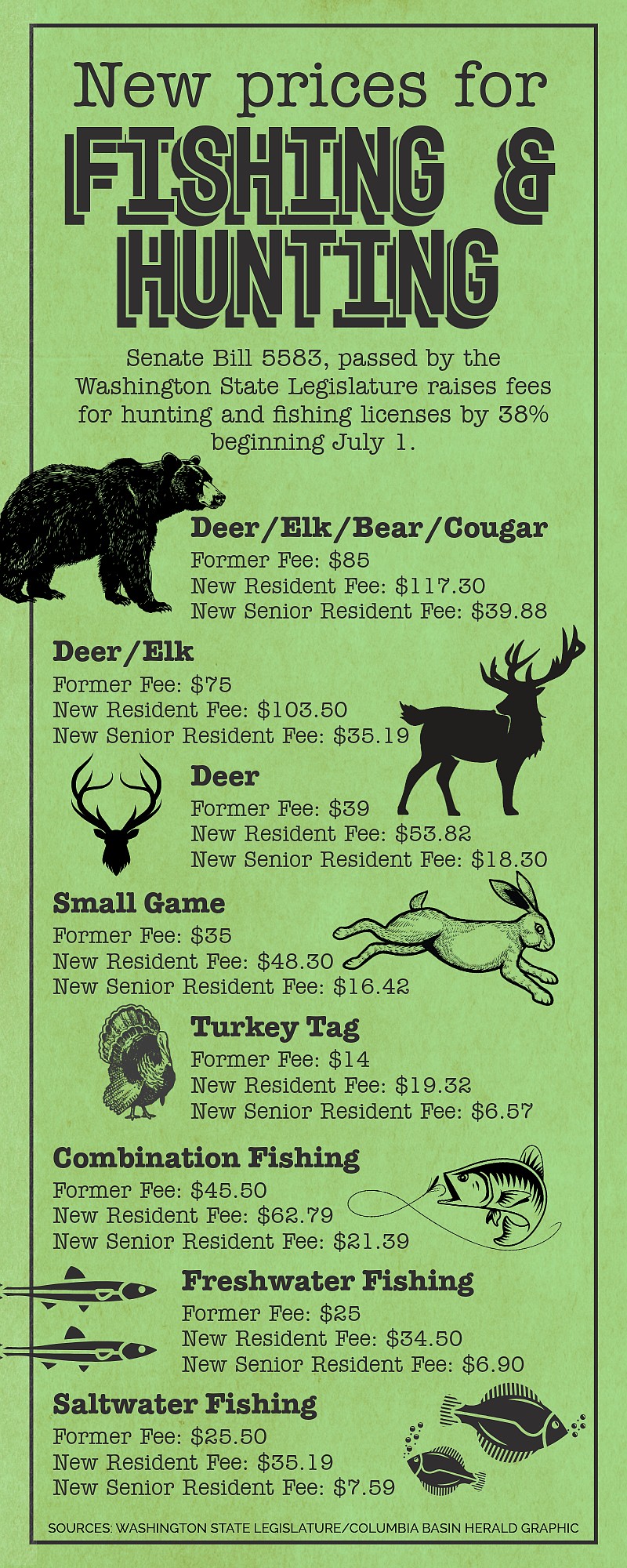 OLYMPIA — In a controversial decision, Washington State has approved a significant increase in recreational fishing and hunting license fees, which officially took effect yesterday, June 1. “This bill proposes an inflationary adjustment. It’s a significant adjustment, but inflation has been substantial over the last 15 years,” Sen. Marko Liias (D-Edmonds) said on the Senate floor. “It also charts a sustainable path forward.”