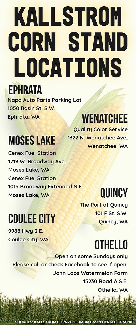 MOSES LAKE – As summer arrives in full bloom, the sight of Kallstrom Corn stands dotted throughout the Columbia Basin has returned, marking the beginning of the sweet corn season for locals awaiting the taste of the Kallstrom sweet corn. “The corn crop looks really healthy. It has a nice dark green color,” co-owner Mark Kallstrom said. “The weather started out cool, but it warmed up just enough; we got the heat units to bring it out a couple of days earlier.”