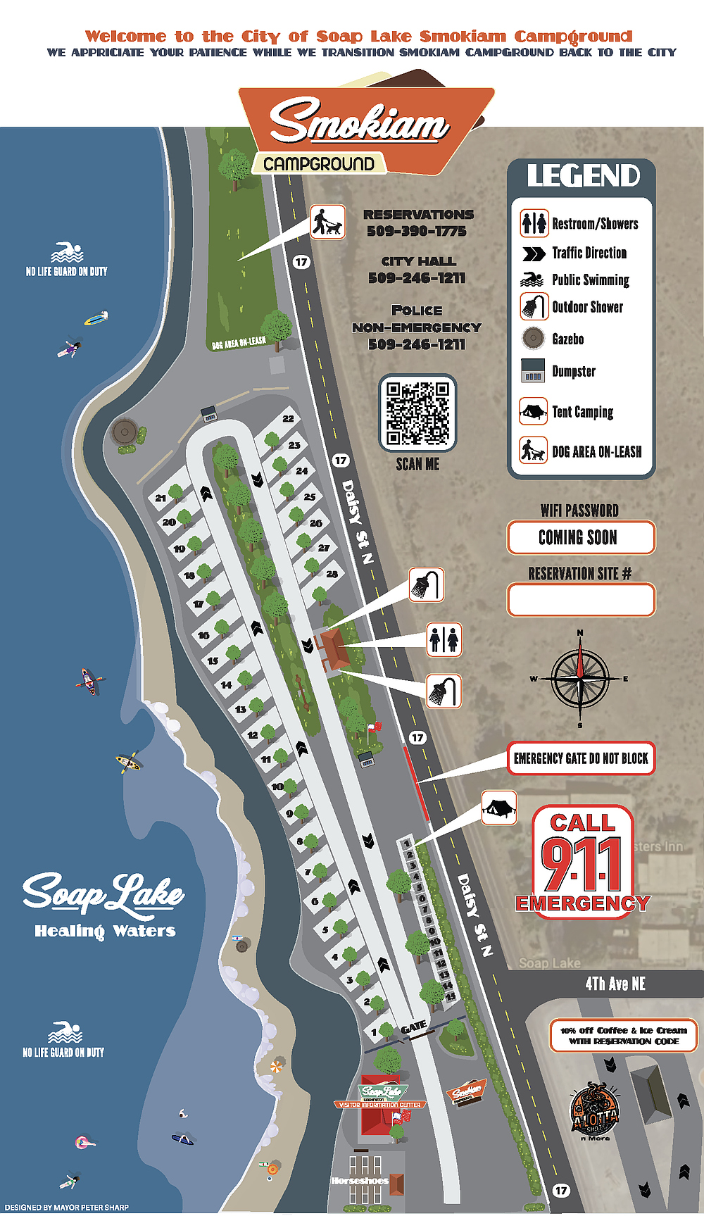 SOAP LAKE – After years of private management, the City of Soap Lake has officially taken back control of the Smokiam Campground. Mayor Peter Sharp said he supported the transition towards revitalizing the local asset.