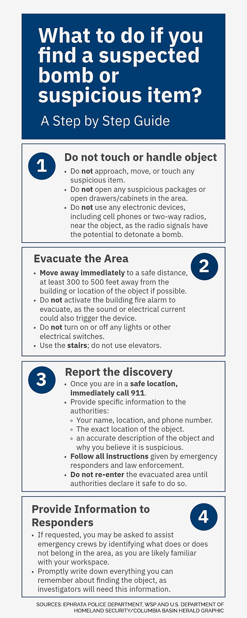 EPHRATA — Early afternoon Thursday, Ephrata Police Department was called for suspected blasting caps found in the northwest section of town at a construction storage yard. “They were found in a steel container. When they opened the container, they recognized that they were explosive devices. They immediately called MACC dispatch and the Ephrata Police Department responded,” Captain Troy Froewiss said.