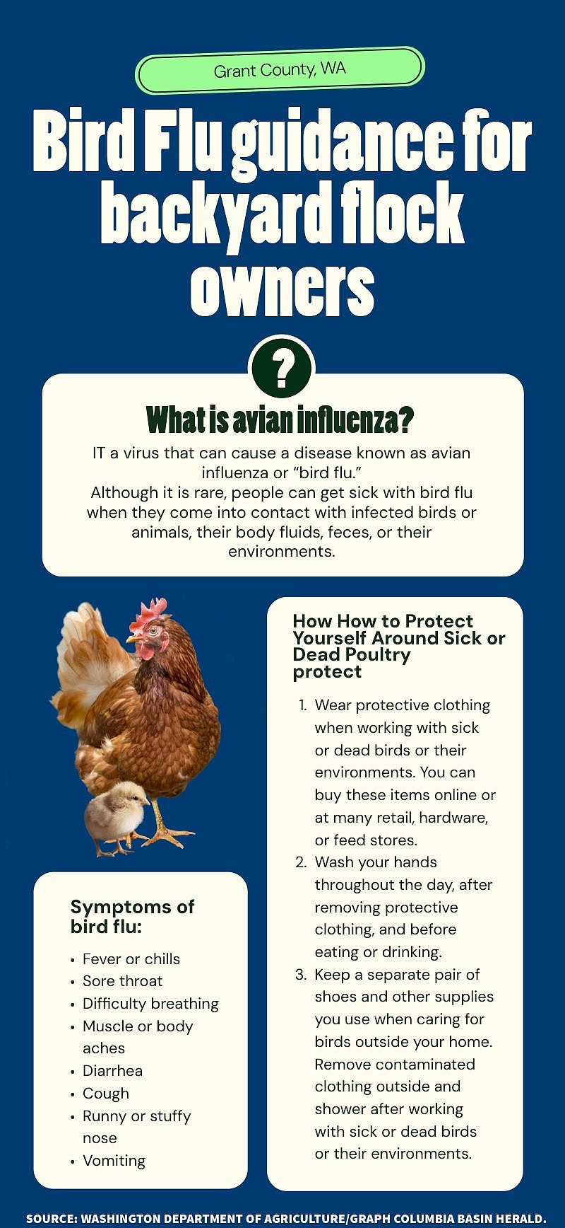 MOSES LAKE — The Washington State Department of Agriculture confirmed the detection of highly pathogenic avian influenza, commonly known as bird flu, in a large commercial poultry facility in Moses Lake, marking the first instance of avian influenza in Grant County. The announcement was made on October 10, 2025, following the initial report of sick birds that came to light October 7.