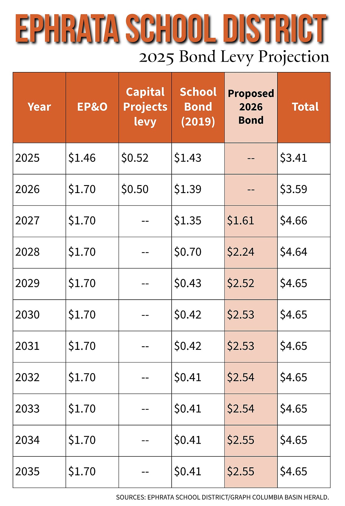 EPHRATA – The Ephrata School District Facility Study Group proposed a $75 million bond to the Ephrata School Board Monday night. The board unanimously approved Superintendent Ken Murray to move forward with a bond resolution for the board to vote on. If passed by the board, the bond will appear on the Feb. 2026 ballot.