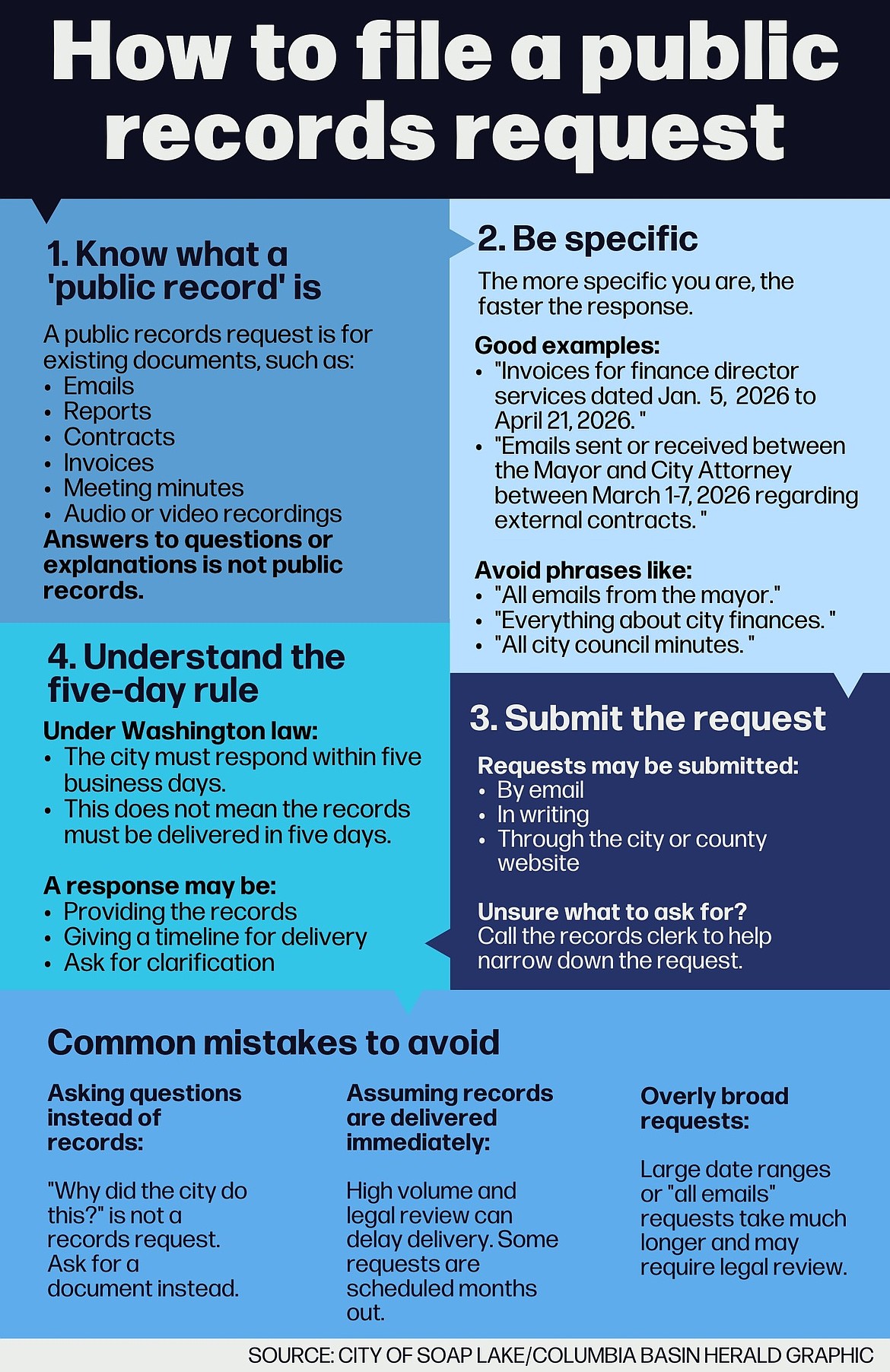 SOAP LAKE — The City of Soap Lake is experiencing a upsurge in public records requests this spring, with dozens of inquiries pouring in from residents, reporters and outside agencies as the city navigates ongoing investigations, staffing changes and questions about financial oversight.