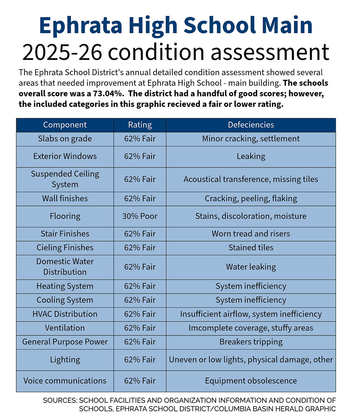 EPHRATA — As the Ephrata School District prepares to bring a $75 million bond proposal to voters in Feb. 2026, one of the components is a plan to renovate Ephrata High School. The proposal aims to address aging infrastructure, scattered campus layout and growing instructional needs.