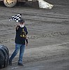 Vern Hellewell waves the checkered flag during the first Heat Race to kick off day …