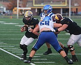 Brady Jay (2) lowers his shoulder as he collides with a Bothell defender on Saturday. …