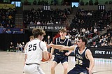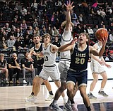 Sophomore Max Grindy (25) from ACH scores a two-point shot during the championship game Saturday.