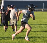 Max Grindy, a junior for ACH, sprints downfield and speeds past the Naselle defenders during …