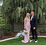 Chuck Sutton and Lisa Karstetter, left and second from left, president and treasurer of the …