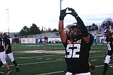 The Mavs’ Kaden Dominguez (52) shows love to the Mavericks fans in the stands after …
