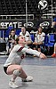 Broncos senior volleyball player Hannah Towne gets down low to hit the ball against Manson …