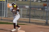 Mavs Mya Martinez makes the out at first against AC Davis. Moses Lake’s doubleheader wins …