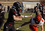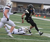 Almira/Coulee-Hartline's Caden Correia runs for a first down against Entiat Nov. 15.