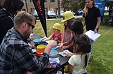 Four girls learn how to make a battery from pennies at Sila’s booth at the …