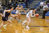The Eagles’ Mylee Dana (1) takes off with the ball on a fastbreak after forcing …
