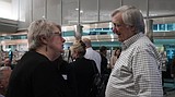 Port of Moses Lake Commissioner Stroud Kunkle talks with an attendee during the port’s 60th …