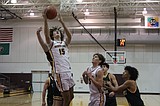 Moses Lake junior Tyce Miller (22) rises toward the rim for a lay-up during Monday’s …