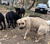 Tantan, the tan dog pictured, is the mother of one of the puppy litters found …