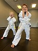 Students at the dojo get into a defensive stance during one of their classes. Steel …