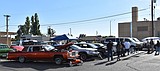 People look at a row of lowrider cars in the Washington Federal parking lot during …