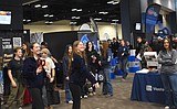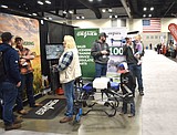 Attendees check out equipment on display at the Spokane Ag Show Thursday