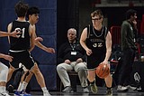 Caden Correia, a junior from ACH dribbles the ball during the tournament game at Spokane …