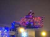 Santa Claus rides high above the Moses Lake Ag Parade in a Genie Industries lift.