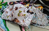 A collection of recently gathered donated masks sit in the front of the Fabric Patch …