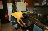 Olivia Zamarron (foreground) checks to see if the muffins are done. Zamarron and Chrissy Carpenter …