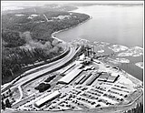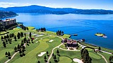 An aerial view of the Coeur d'Alene Resort golf course, with its floating island green.