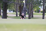 Travis Laibl chips his shot up onto the virtual green at the Moses Lake Divots …
