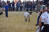 A sheep goes slightly astray during the sheep competition of the Grant County Fair. Students …