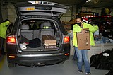 Dee Dee Duke loads a car with potatoes as part of the distribution of Christmas …