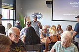 The Health Zone owner George Stevenson shows Mike Love, of Moses Lake, how to incorporate …
