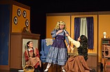 Meg March (Paige Meredith), right, and her sister Jo (Magali Marroquin), left, play out roles …