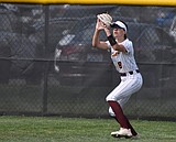 The Mavs’ Caitlin Decubber makes a catch in the outfield for a third out in …