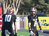 The Mavs’ Grant Smith (13) makes a contested catch along the sideline against Issaquah on …