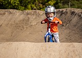 Young strider rider Parker Gerpheide helps kick off races at the BMX track in Moses …