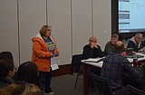 Adams County Pet Rescue board member Tammy Foley speaks during the public input portion of …