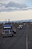 A truck convoy arriving from Moses Lake for the Freedom Ride and Rally on Saturday.