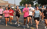 Knights girls cross country jogs through the school parking lot during their practice. Head Coach …