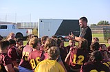 Mavericks Head Coach Brett Jay talks with his team during their first practice of the …
