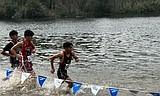 Othello’s Ethan Rincon on the course with two athletes from competing schools close behind. Rincon …