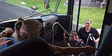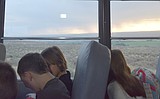 Students on Brenda Wurl’s bus talk and stare out the window Tuesday morning on their …