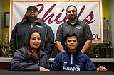 Moses Lake senior Raymundo Curiel, his parents, and former Moses Lake head coach Richie Ramirez …