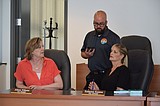 Soap Lake Mayor Peter Sharp administers the Oath of Office to the two newly appointed …
