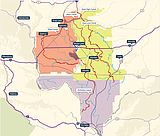A map and graphic from the Columbia Basin Development League website showing the cities, canals …