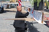 Samaritan Healthcare Chief Administrative Officer Alex Town adds his name to the last beam.