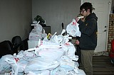 Christian Williams, of Scout Troop 777, adds to the stack of sorted and bagged toys.
