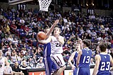 Derek Isaak drives the lane for two of his game high 44 points against Valley …